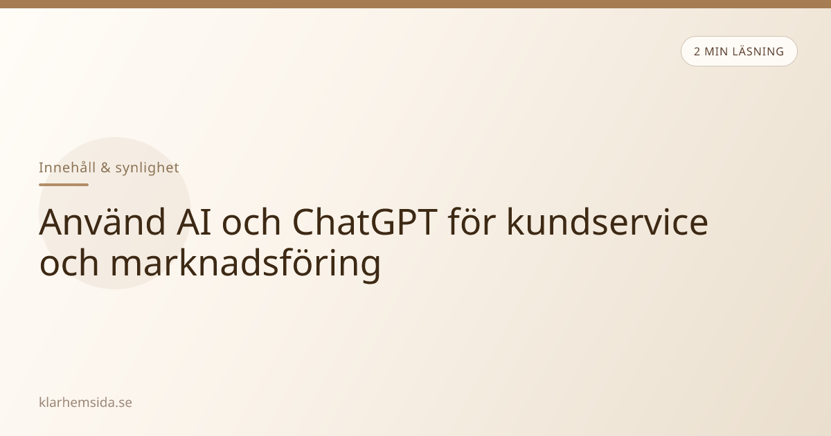 Verktyg som ChatGPT och liknande tjänster används allt oftare till utkast: svar på mejl, idéer till inlägg eller att strukturera en textsida. För ett småföretag är värdet tid och tydlighet — inte att ersätta din röst helt.