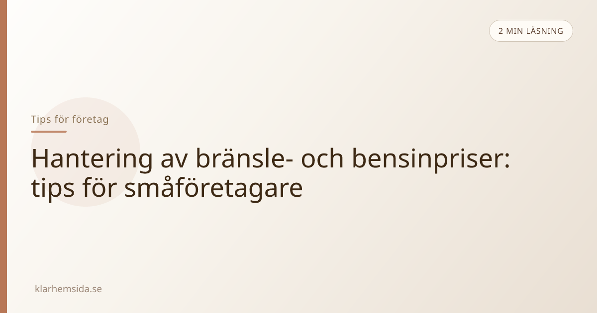 Om du kör ut till kunder, levererar varor eller har en vagnpark som tickar igång varje dag märks bränslepriserna direkt på raden bränsle och resor — ofta samtidigt som du vill hålla priset stabilt utåt.