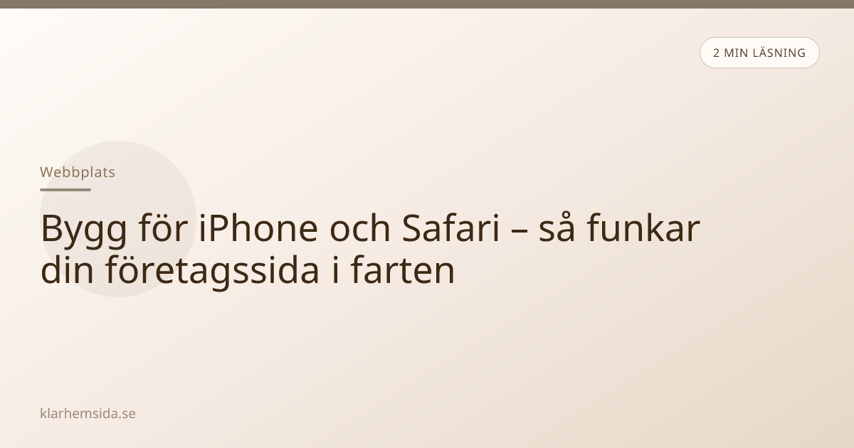 Grunderna för en bra mobilupplevelse — stor text, stora tryckytor, snabb laddning — finns i mobilvänlig företagssida. När kunden kommer från iPhone och Safari finns några extra vanor värda att tänka på.
